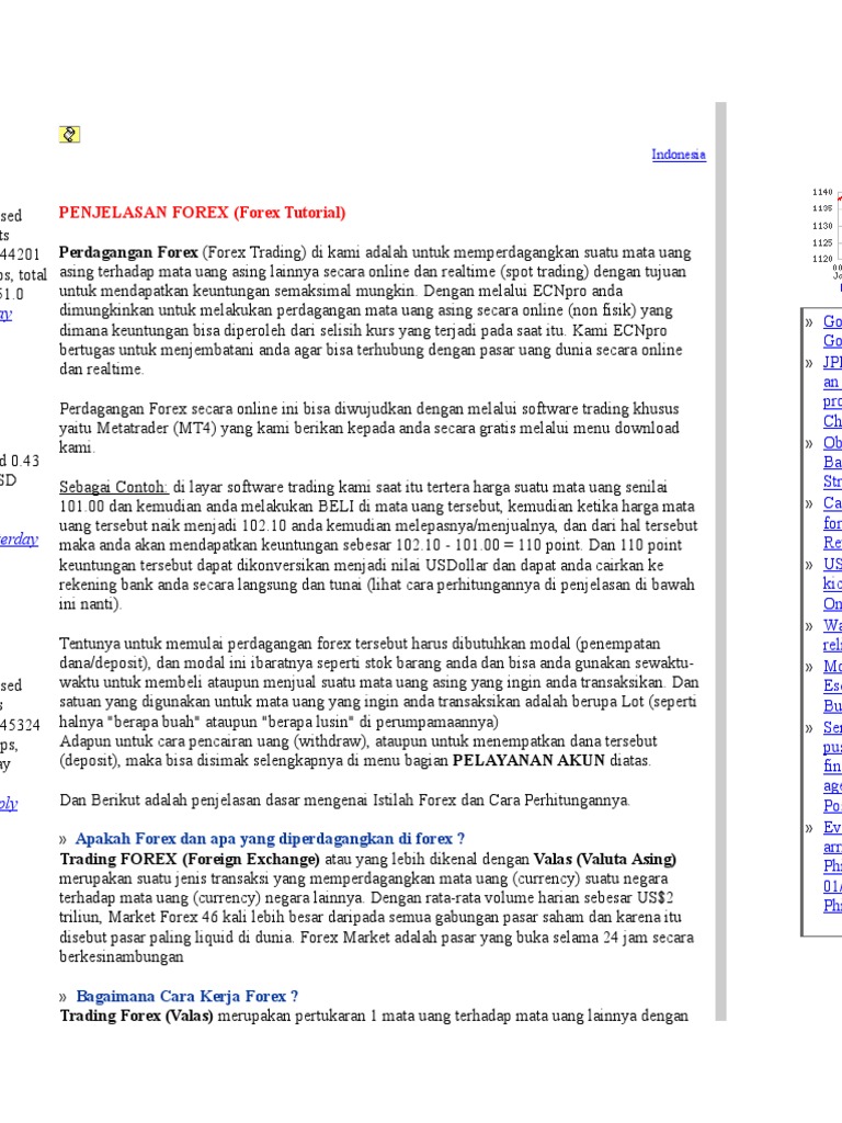 Anda sebagai trader forex akan mendapatkan keuntungan saat membeli mata uang tertentu dan selanjutnya menjualnya kembali pada saat mata uang tersebut mengalami. Jika anda merasa bosan karena terlalu banyak teks, anda dapat mengakses isi halaman ini dalam bentuk video yang dapat anda tonton di bawah ini : Pasar valuta asing (bahasa inggris: